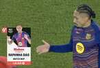 西甲第19轮,巴塞罗那主场3-1击败马德里竞技,此役打入一球的巴萨前锋拉菲尼亚当选西甲官方全场最佳球员。