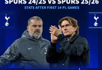 对比上赛季波斯特科格鲁治下的热刺,这支热刺在同期战绩方面全面处于劣势。德转列出榜单对比了热刺近2季14轮英超后的数据。