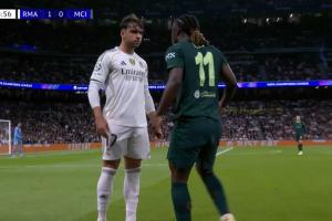 体育资讯12月11日讯 欧冠联赛阶段第6轮,皇马对阵曼城。29分钟, 多库边路与阿森西奥争抢,两人发生争执。