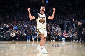 谈到帕特·斯潘塞时,库里这样说道:“我和他一直在比拼谁的庆祝动作最疯狂……这很自然,也很真实,……我记得三年前第一次和他一起打野球,就是在训练营开始前,他跟我喷了垃圾话。”