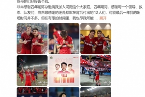 黄紫昌告别河南队:很高兴打进队史第1000球,唯有足协杯留遗憾