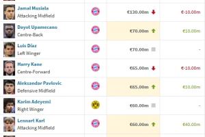 更新后德甲身价前十↓