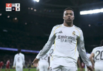 西甲第17轮,皇家马德里主场对阵塞维利亚,下半场姆巴佩主罚点球破门,至此,姆巴佩2025年代表皇马已打入59球,追平了C罗在2013年创下的皇马球员单一自然年进球纪录。