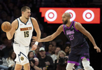 本赛季三次交手,约基奇场均砍下36.0分15.7板12.0助1.3断1.3帽;两分球命中率73.5%,三分58.3%,罚球97.4%,真实命中率是恐怖的86.1%,正负值累计+35。