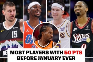 本赛季合计有9名球员打出单场50+表现:约基奇、亚历山大、里夫斯、马克西、莱昂纳德、哈登、马尔卡宁、贾马尔·穆雷