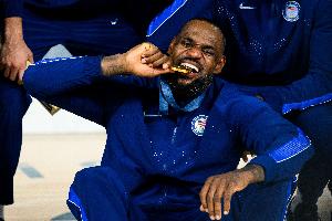 美国篮协官推晒出詹姆斯代表美国男篮夺金的赛场照并写道:“祝三届奥运金牌得主👑@詹姆斯 生日快乐!🇺🇸”