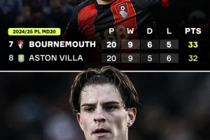 据统计,本赛季伯恩茅斯在20轮比赛过后积分只有23分,位居联赛第15位,而上赛季同期球队在20轮过后积33分,高居第7位。