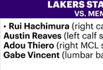 八村塁、里夫斯、文森特、迪耶罗继续缺阵!