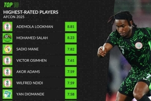 whoscored非洲杯评分榜:卢克曼压萨拉赫居首 马内、阿玛德在列