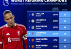 英超第12轮,利物浦在主场以0-3惨败给诺丁汉森林。德转数据显示,利物浦由此成为英超历史上12轮后积分第四低的卫冕冠军。