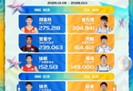 胡金秋(275,218)、贺希宁(239,063)、徐昕(152,513)、郭昊文(144,396)、萨林杰(123,269)、周鹏(105,670)