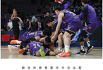 1月12日,北京控股队球员庆祝廖三宁投中绝杀三分球。