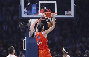 体育资讯1月14日讯 NBA常规赛,雷霆119-98战胜马刺。