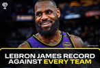 詹姆斯生涯至今面对联盟各队总战绩(数据截止1.13),仅面对掘金的胜率低于五成,和湖人、黄蜂的负场均为个位数。